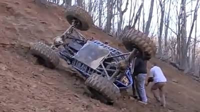 玩大了 钢管越野车攀爬陡坡不幸翻车