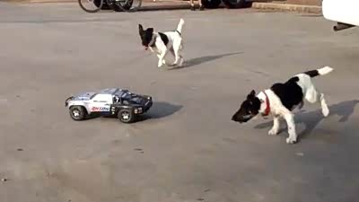 真欢乐!实拍两只狗狗攻击RC遥控车
