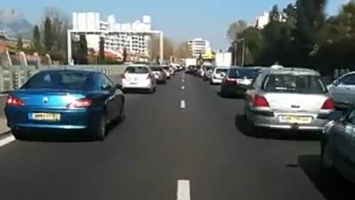值得敬佩学习 看法国车友为救护车让路