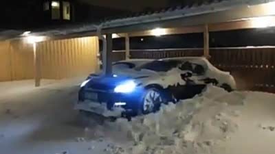 相当给力!GT-R冲出雪堆扮演铲雪车