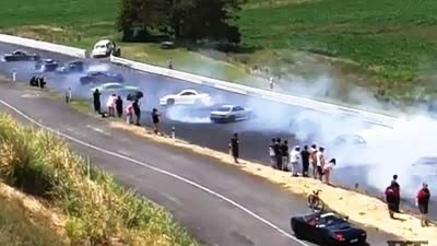 遮云蔽日!30辆汽车同时烧胎秀车技