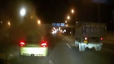 猝不及防!实拍小车恐怖追尾无灯大货车