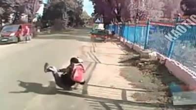 还得瑟吗?实拍疯狂摩托跌倒惊险一瞬