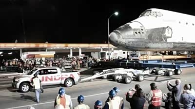 最后一程!丰田坦途皮卡拖拽航天飞机