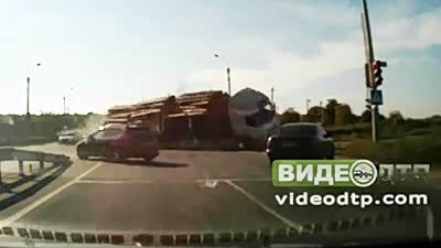 原木洒落一地!大货路口翻车多车受牵连
