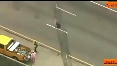 艺高人胆大 高速公路车流中冒险填漏洞