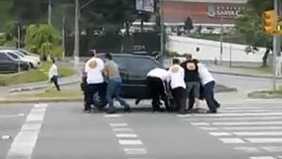 遵守交规!巴西志愿者对抗红灯越线司机