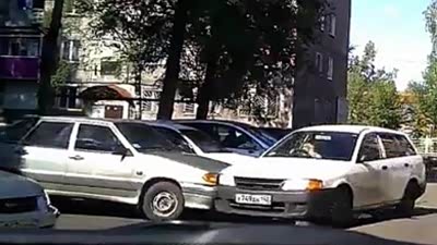 令人纠结!妇女停车很悲催连撞两车
