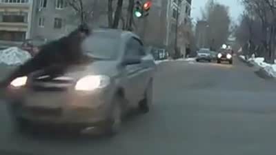 脾气倔得很 彪悍女司机无视胎锁束缚