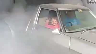 从娃娃抓起 7岁女孩开老爸车玩烧胎