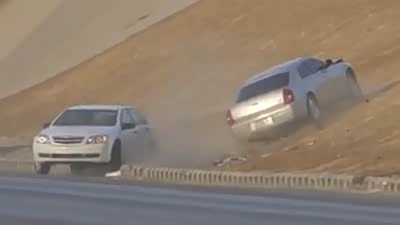 这下傻眼了吧?阿拉伯车友玩甩尾酿车祸