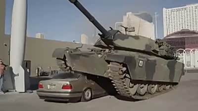 叫板炫富男 美国富豪开坦克碾轧宝马7系