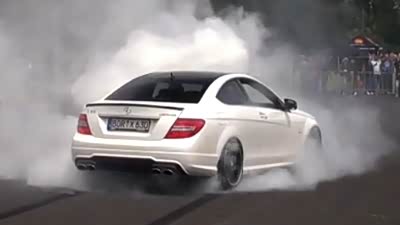 大排量自吸绝唱 实拍奔驰C63 AMG烧胎