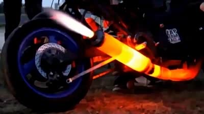 小心烫着腿 暴强改装摩托车喷火排气