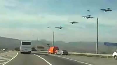 场面挺壮观 俄罗斯车友偶遇战机编队