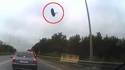 致命一击 前车意外碾轧铁条砸后车玻璃