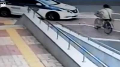 饥不择食 骑车男碰瓷目标锁定路边警车