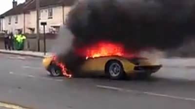 令人心痛!实拍兰博基尼Miura自燃全程