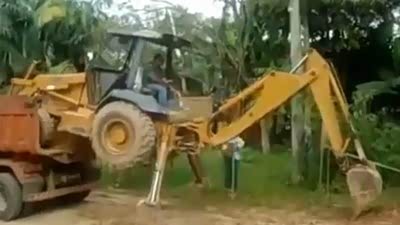 逆天技术 看挖掘机如何自己爬上货车
