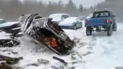 最快拆车 实拍改装皮卡拖垮报废轿车