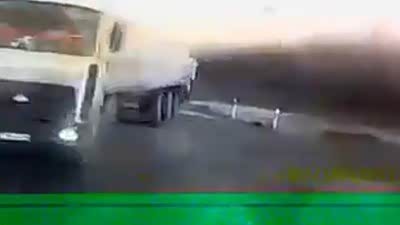 惊险瞬间!迎面大车失控漂移甩飞来车