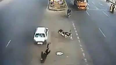 故意的?摩托车遭轿车撞飞惊魂瞬间