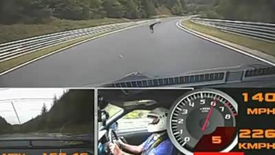 险些失控!GT-R纽博格林赛道高速撞鸟