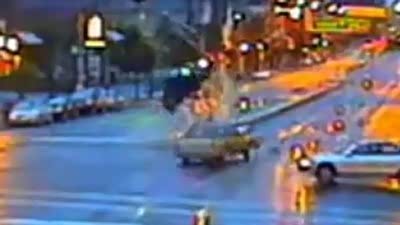 闯红灯的后果!违章车被恐怖撞飞似特技