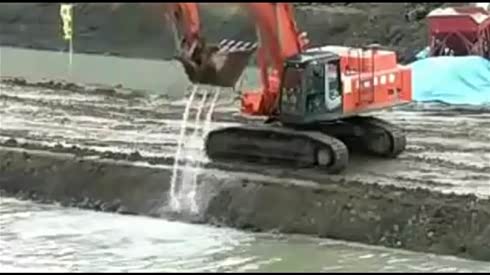 蓝翔必修课 挖掘机河沟边给自己洗澡