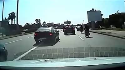 黯然销魂掌!骑车男动怒拍碎汽车后视镜