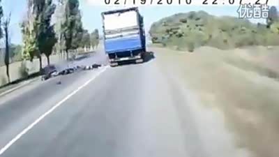 重口味慎入!空旷公路上的血腥摩托事故