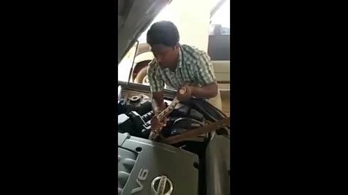 怎么进去的? 男子从发动机舱揪出一条蛇