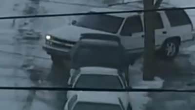 完全失控!海外结冰路面混乱撞车一幕