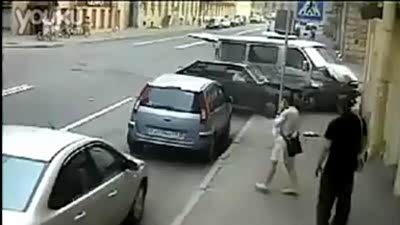 淡定!女子机敏躲过迎面而来的恐怖车祸