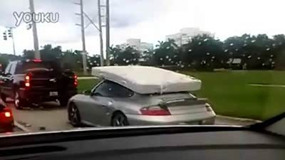 猜他去干啥 街头偶遇顶床垫的保时捷911