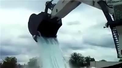 爆强!!挖掘机水弹攻击摧毁汽车!