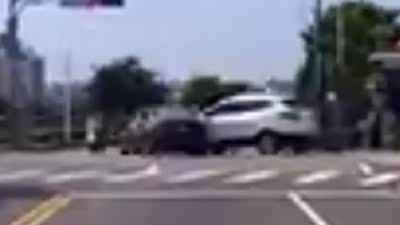 受害车滚落桥下 实拍轿车闯红灯被撞