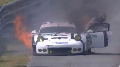 勒芒24小时耐力赛 两台保时捷赛车起火