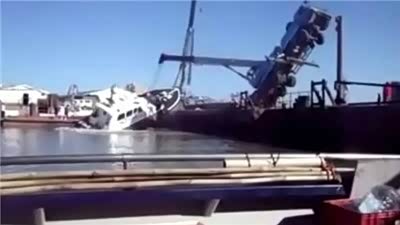 不量力而行的后果 起重吊车卸船失败