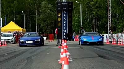亲兄弟对决 奥迪R8直线挑战Huracan
