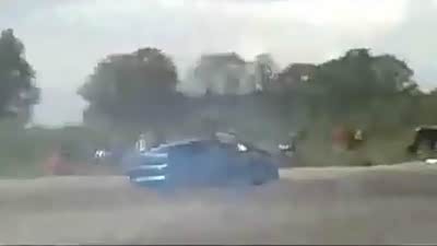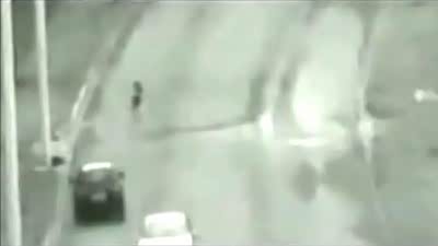 横穿马路的敏捷跨栏女侥幸逃离车祸