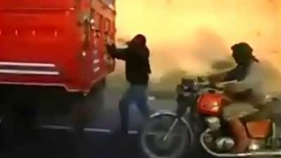 潇洒过头了!大牛街道耍酷撞倒七零八落