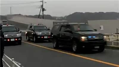 民众很兴奋!实拍美总统奥巴马访日车队