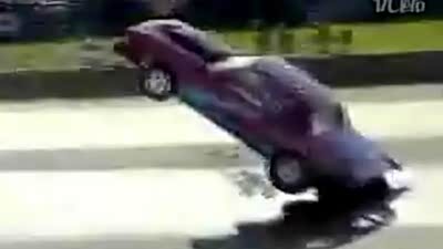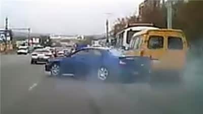 车轮抱死 行车记录仪拍摄翼豹撞车事故