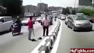 公路擂台赛 哥俩拳打脚踢处理交通事故