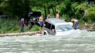 不自量力 帕杰罗越野车过河惨痛失败