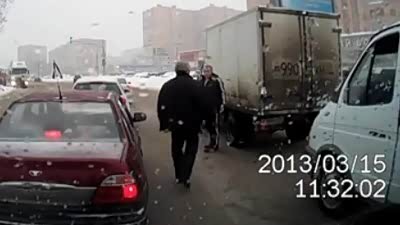 演技急需提高 实拍俄罗斯女子碰瓷全程