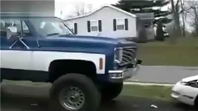 如此深仇大恨?路边停车遭改装皮卡强虐