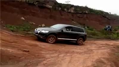 车轮打滑算什么!大众途锐沙石路面爬坡