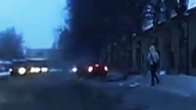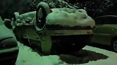 又见幸运帝 轿车雪路失控行人逃过一劫